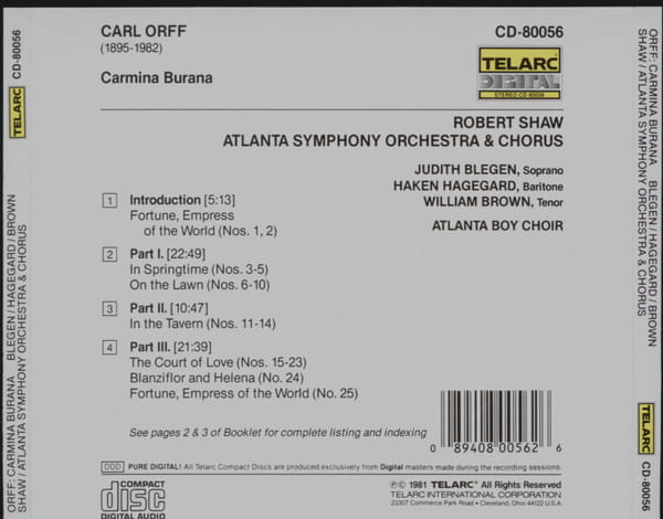 ORFF CARL - CARMINA BURANA